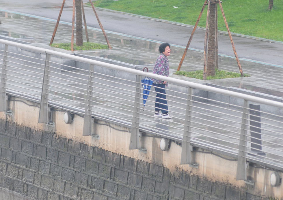 2013年5月9日,浙江宁波,由于岸边护栏过高,又没绳子、梯子,李红无法将跳桥男子送上岸。