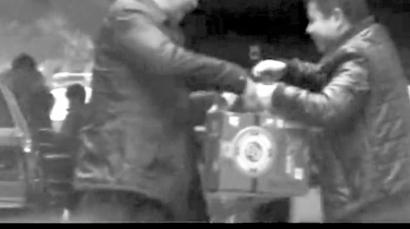 视频记录“风衣男”正接受礼品。(视频截图)