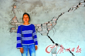思经村村民罗玉芳一家借款20多万盖了新房,“4·20”地震后屋子墙体开裂,成了危房。 记者 黄澄锋 摄