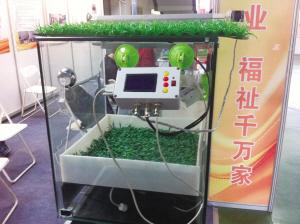 吉林农业大学信息技术学院的宫鹤老师介绍说,这是由他们学院研发的“家庭种植工厂”,采用无土栽培技术,从沼气废液中提取有机质,可以在家里种植小白菜、生菜、番茄等完全有机的放心菜。如果出门家里没人,还可以用电子控制面板来自动监控“工厂”内的光照度、温度、湿度和二氧化碳浓度。“家庭种植工厂”长50厘米,宽50厘米,高60厘米,放在家里阳台上就可以。目前,这个项目还没有投入大批量生产,尚在研发完善阶段。