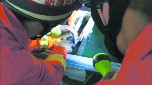 接到报警后,通州马驹桥消防中队迅速携带专业救援器材赶到现场。此时,这名手臂被卷的小女孩被两名年轻女子和一名中年妇女围住,孩子的右臂被深深地塞进传送机的滚轴区内,传送机上的皮带已经被剪断,机器也停了下来。小女孩非常坚强,并没有号啕大哭,这反而让在场的每个人看了更加揪心。为了减轻孩子的疼痛,两名年轻女子将胳膊架在一个塑料篮上,让小女孩坐在上面,中年妇女拉着小女孩的左手不停地掉眼泪。