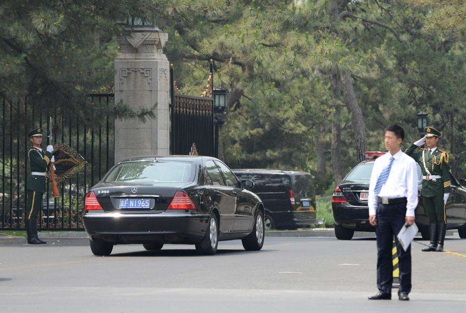 2013年5月22日,中国北京,据信崔龙海的车子驶入钓鱼台国宾馆。