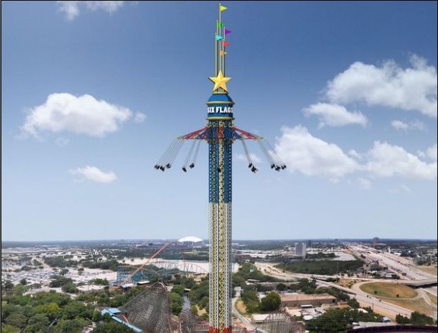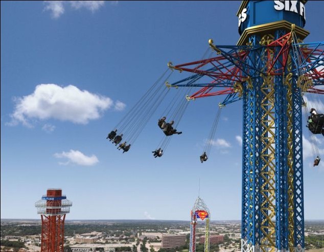 据英国《每日邮报》网站5月26日报道,这座主题公园位于得克萨斯州阿林顿市,塔吊秋千采用的是经典的旋转飞行方式,启动后游客会在高空以每小时56.3公里的速度,绕着一个直径为124英尺(约为37.8米)的圆圈飞行。该项目本月25日正式对外开放,一次可容纳24名游客,两人为一组。
