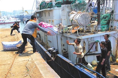 前天晚上,辽普渔25222停靠码头后,船员们连夜开始卸货作业。到昨天中午,船上的货物全部卸载完毕,船员们开始整理行李陆续离船。