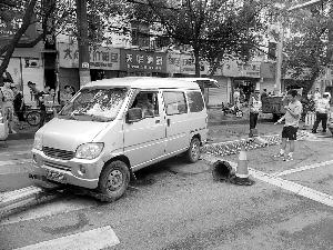 幸亏被护栏底座卡住,面包车才停下来