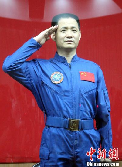 6月10日,神十航天员飞行乘组在酒泉卫星发射中心航天员公寓问天阁与记者举行见面会。神十航天员聂海胜、张晓光、王亚平首次集体亮相,并接受媒体采访。图为聂海胜亮相。中新社发 张雷 摄