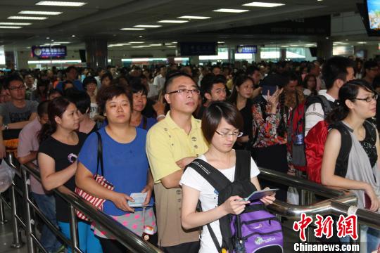 拱北口岸出境大厅被出境游客挤得水泄不通张凤孙摄