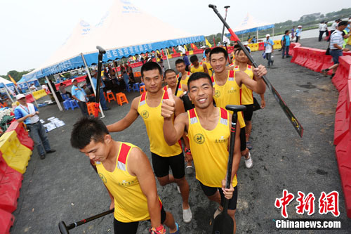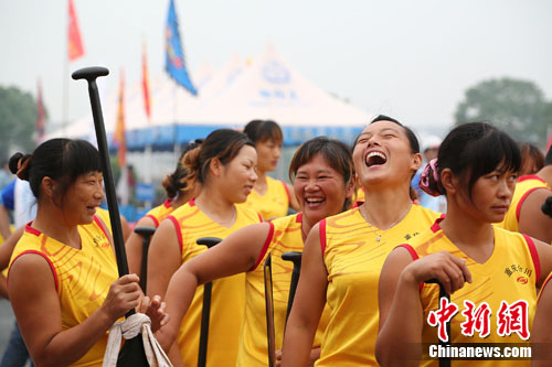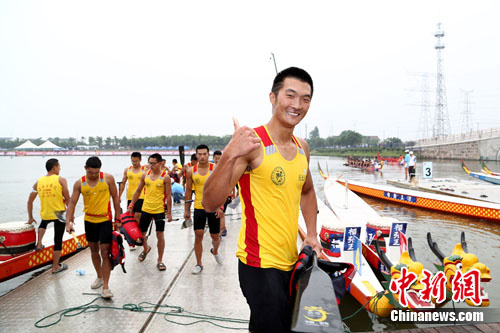 中新网6月11日电 明天是端午节,中华龙舟大赛在江苏江阴市月城镇迎来了最具端午气氛的分站。在今天的预赛和复赛中,顺德乐从和东莞麻涌两强提前“火拼”,争端午的好彩头,各队队员也在比赛后,交流起了彼此家乡赛龙舟的习俗——传统的端午节文化,在大赛的平台上得到了继承和推广。