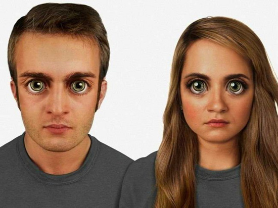 这份预测显示,如果人类移居在远离太阳的星球时,长时间在阴暗的地方生活,眼睛会大的很夸张,如同猫咪在昏暗的环境一样;为了呼吸到更多空气,鼻孔将会越来越扩张,头发则会长的浓密以便保暖头部,肤色则会越来越黝黑,以舒缓紫外线的伤害。