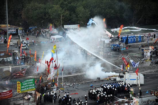 在塔克西姆团结论坛的号召下,塔克西姆广场晚上再次聚集大批示威者。民众高喊:“哪里都是塔克西姆,哪里都有抵抗……政府解散,总理下台!”示威者与防暴警察发生冲突。记者从直播画面上看到,广场一度烟雾笼罩,在高压水枪的驱赶下,示威人群向广场四周的街巷散去,场面混乱不堪。土耳其医学协会称,冲突造成多人被送院治疗。伊斯坦布尔省省长穆特鲁对媒体表示,警方的驱逐行动将持续到清理完“边缘群体”地区为止。