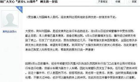《致广大关心“延安5·31事件”网友的一封信》。网页截图