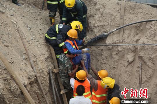 中新网乌鲁木齐6月18日电 (潘祺)6月18日9时22分,位于哈密市前进东路火车站站牌施工现场发生支模架坍塌事故,1名施工人员不慎被掩埋在5米深沟内,身体多处受伤。