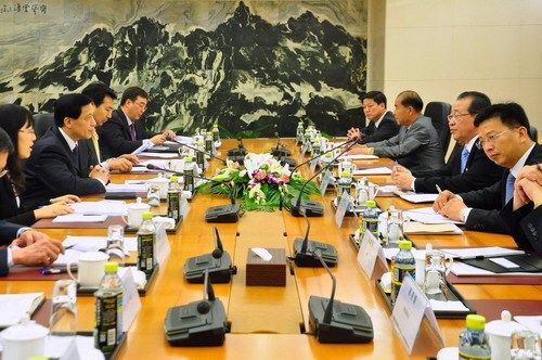 金桂冠说,朝鲜珍视朝中传统友谊,愿同中方一道,继续发展好两国友好合作关系。实现朝鲜半岛无核化是金日成主席和金正日总书记的遗训,朝方愿与有关各方举行对话,参加包括六方会谈在内任何形式的会谈,希望通过谈判和平解决核问题。