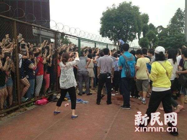 人民网6月20日讯 (记者 李叶)据上海市公安局官方微博消息,今日下午14时40分许,英国足球明星贝克汉姆至同济大学参加活动,因现场围观大学生过多,造成现场维持秩序的三名民警、两名学校安保人员软组织挫伤。据了解,另有两名学生受轻微伤。