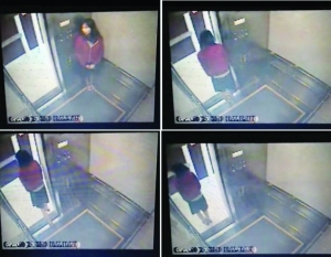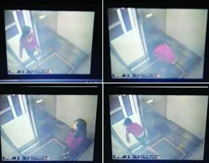 五六秒钟后,她单脚跨出电梯间飞快地左右张望。然后又退回电梯间,瑟缩在按钮的一角。几秒钟后,她再次探头察看电梯外的情况,然后走出电梯,向左横向移动。不久,林可儿再次折返,按了多个按钮,可是电梯门始终不能关闭。最后,她又走出电梯,站在门边手舞足蹈,向右侧和前方比划了许多不同手势,时间长达28秒,然后消失于画面中。