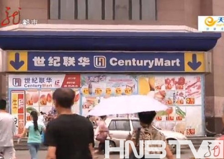 男子购买变臭哈肉联烧鸡的世纪华联超市。(视频截图)