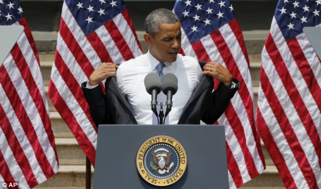 据英国《每日邮报》6月25日报道,由于高温炎热天气,美国总统奥巴马25日在乔治城大学就气候变化进行演讲时,不得不脱去上衣外套,并在演讲期间不停地用手绢擦汗。