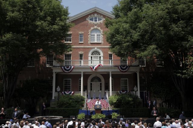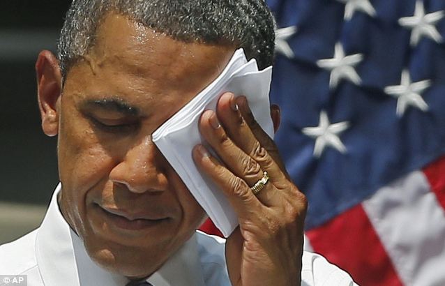 奥巴马顶高温天气演讲不停擦汗