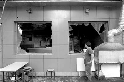 起火饭馆临街的窗户已破碎。京华时报记者 徐晓帆 摄