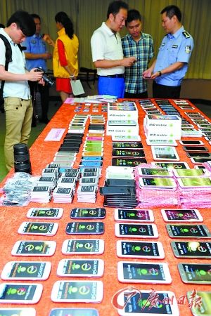 用衣服、鞋子作伪装,通过物流用火车源源不断将假冒的三星、苹果手机运往全国,甚至远销境外。今年6月21日~26日,在公安部经侦局的统一指挥下,广州荔湾警方会同北京、广西、云南、西藏、黑龙江等地警方,联合对一个跨境特大销售假冒品牌手机网络开展集群战役收网行动,共抓获犯罪嫌疑人13名,捣毁制假售假窝点9个,缴获假冒三星、苹果等品牌高端智能手机3059部,各类假冒手机包装盒和配件一大批以及已销售的单据一批,涉案金额达40多亿元。