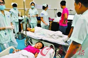 记者接报后赶到廉江市人民医院,在急诊室看到,现场多名医护人员正忙碌开展救治工作,为中毒小孩实施洗胃等治疗。该院医护人员告诉记者,经初步诊断,这些小孩是吃用了变质食物引起的急性肠胃炎。