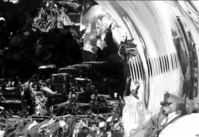 12日,在美国旧金山国际机场拍摄的韩国亚洲航空公司失事客机的残骸。新华社发