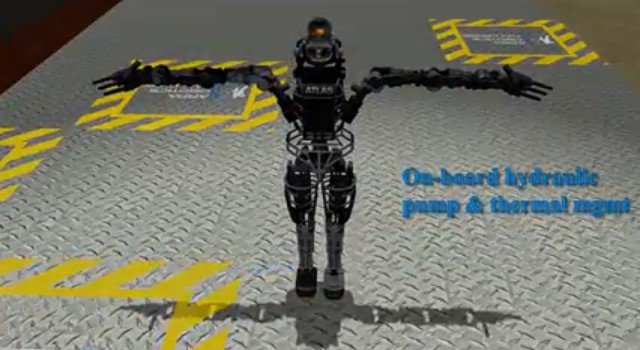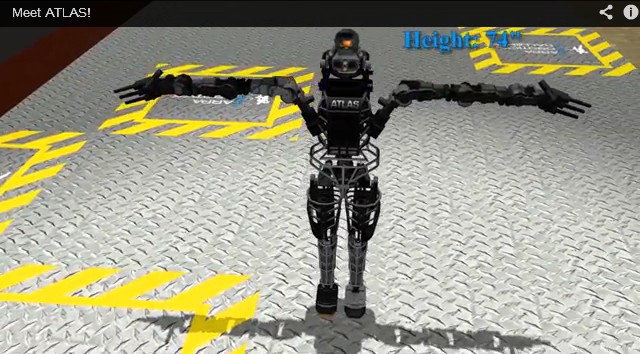 “阿特拉斯”特征:身高1.9米体重150千克,身躯由头部、躯干和四肢组成,“双眼”是两个立体感应器,有两只灵巧的手,能在实时遥控下穿越比较复杂地形。能力超强,单腿站立,从侧面飞来的球撞不倒。