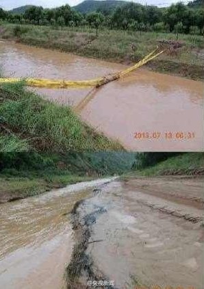 【延安一输油管道突发爆裂 致大量原油泄露】踞当地村民爆料,7月12日,长庆油田采油一厂位于延安志丹县杏河镇牛寨村一输油管道突发爆裂,致大量原油泄漏,流入周围水系。其下游是 一级水源区王瑶水库,如流入会威胁20余万居民饮水安全。企业组织大批人员下河捞油,但因降雨几度搁置。(央视记者陈武)