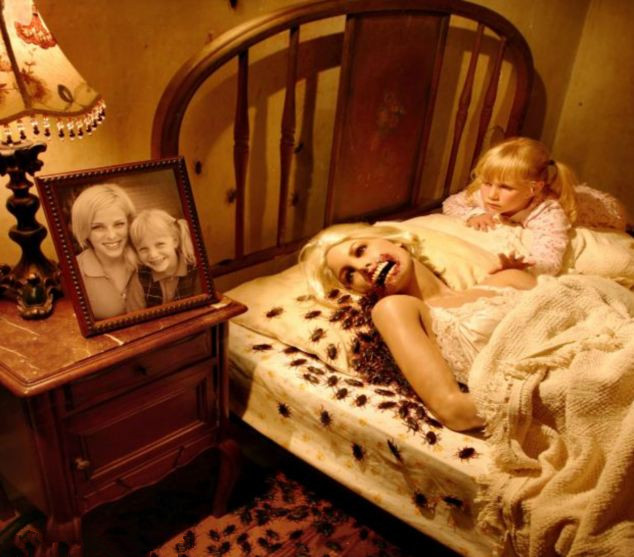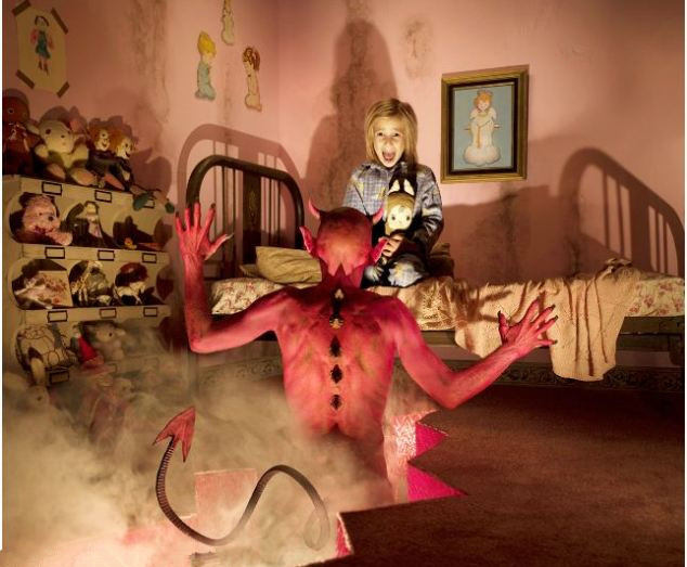 【环球网综合报道】听过很多鬼故事而又想象力丰富的小孩可能都曾有过这样的经历:缠着父母生怕床下突然出现怪物或是地下室窜出蜘蛛。据英国《每日新闻》7月14日报道,40岁的美国摄影师约书亚(Joshua Hoffine)以经典的童年恐惧为主题,将自己的女儿们作为主角,拍摄了一系列旨在探索恐怖故事本质的摄影作品。