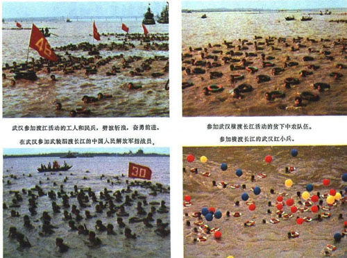 毛泽东畅游长江的壮举,极大提高了当年参加游泳运动的人口比例,水中的毛泽东如鱼得水,不讲规则和技巧,想怎么游就怎么游,因为他太熟悉水性。从1956年到1966年的10年间,他42次畅游长江,其中17次是在武汉。武汉市的横渡长江活动也一直被沿袭下来。