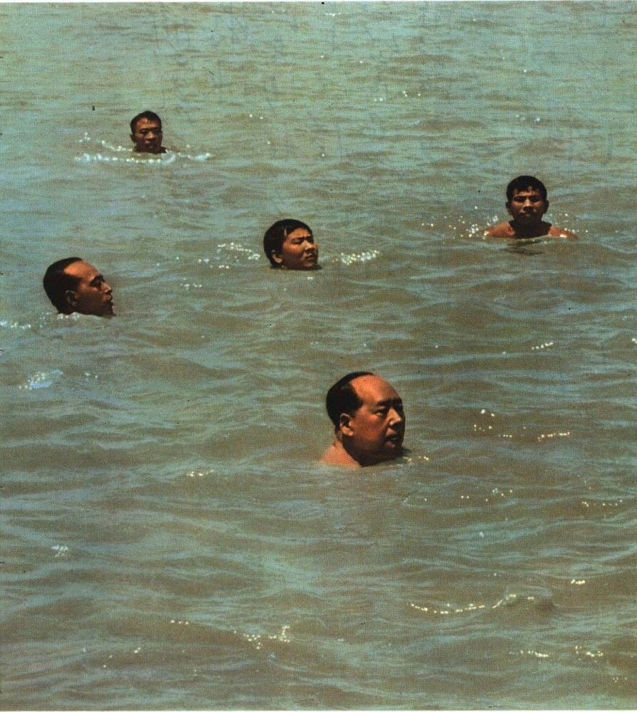 1966年7月16号,毛泽东以他73岁的高龄再次畅游长江,这次他游了一小时零五分钟,畅游长江之后的毛泽东留下了这张著名的照片。这次畅游长江活动得到了广泛报道,7月16号也被确定为毛泽东畅游长江纪念日,以后的数年,这一天被定为全国游泳日,每到这一天,全国众多城市都会举行横渡江河或游泳活动。