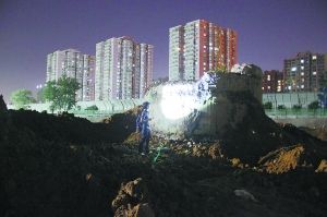 本报讯(记者王琪鹏)昨天下午,在东城区永定门外的西革新里危改项目工地,工人们挖出一座钢筋混凝土结构的防御工事。附近居民猜测,这应该是抗战时期侵华日军占领北平时修建的炮楼。今天上午,东城文委工作人员表示,这座炮楼是民国时期修建的,并不属于文保建筑。