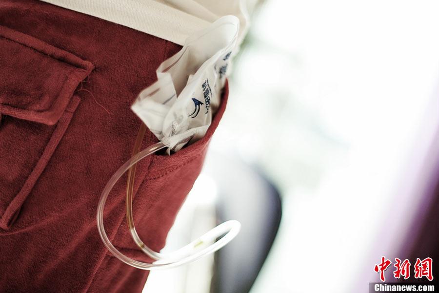 术后,李舒身体里插着引流管。揣在李舒裤兜里的那个不能碰的东西对孩子们来说或许是个很神秘的“宝贝”。