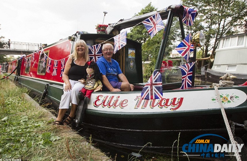 利物浦一家人为庆祝王室即将添丁,将自家小船装饰一新。