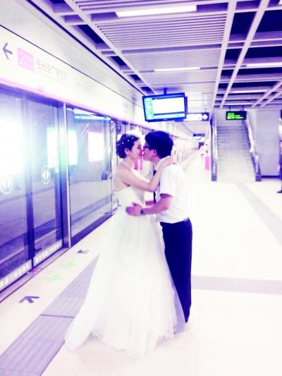 “婚礼见过很多,地铁婚礼还是第一次见到。”冯先生说,新郎彭先生还参加过地铁设计。记者也采访了新娘小朱,她和老公是一年前在读MBA时相识的。她老公在3年前参加过地铁站台设计,她母亲觉得地铁方便快捷,会让她的幸福不堵车。