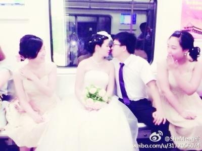 昨天上午11点多,网友“ShaMeng宇”一连发了3条微博直播了这场地铁婚礼,该网友在微博中写道:“武汉地铁2号线迎亲婚礼,好刺激,好有趣。”