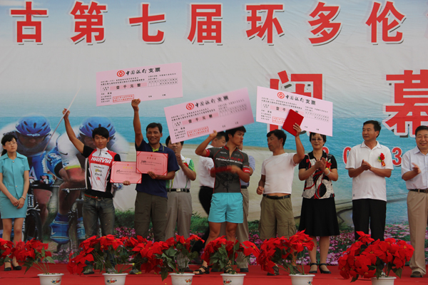来自北京、河北、成都、沈阳、山西、山东、大庆、包头等地的区内外自行车爱好者齐聚古城多伦,31支车队,200名选手在青山秀水间展开了激烈角逐。最终晶鼎聚龙车队的于世杰以3小时10分19秒68的成绩夺得此次比赛的冠军,第二名、第三名分别被ZGL车队的刘博和侍宗康获得。