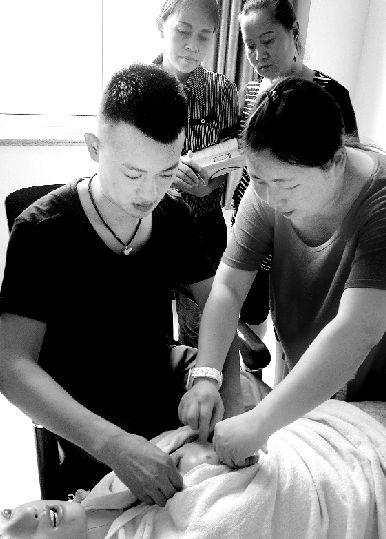 半个月的理论培训和实践操作,作为唯一的男性,杨军学得特别用心。刚开始是拿模特做练习,后来一些阿姨就让他在自己身上练习,让他格外感动,增强了信心,并顺利通过人力资源和劳动保障系统组织的催乳师考试,正式上岗。