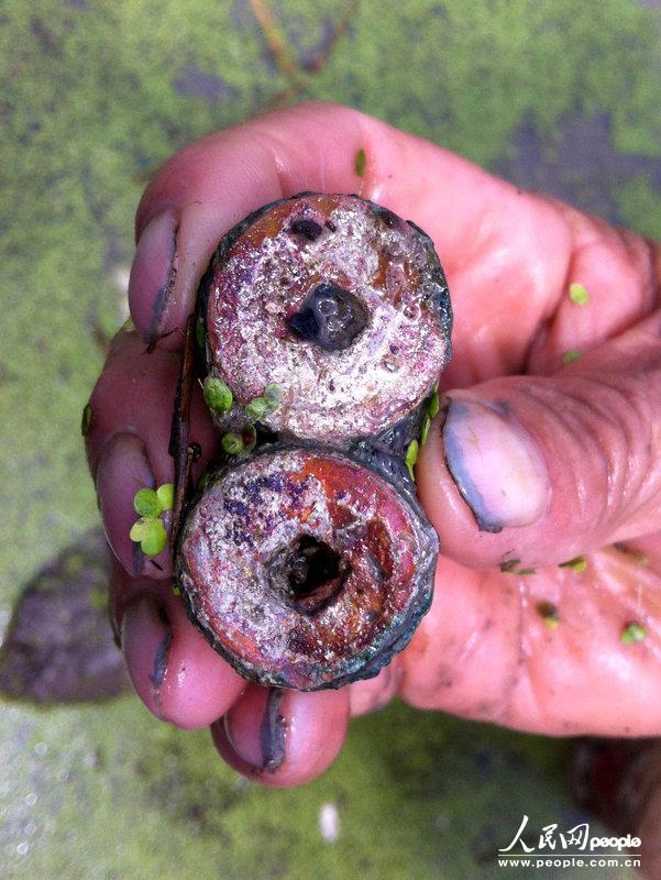 一名参与寻宝的男子表示,他在工地上一共找到53枚铜钱,但不认识铜钱上的字。一位村民向人展示了一枚挖掘来的铜钱,该铜钱直径两公分左右,中间有方孔,两面生满铜绿,上面依稀有“崇”、“宝”字样。