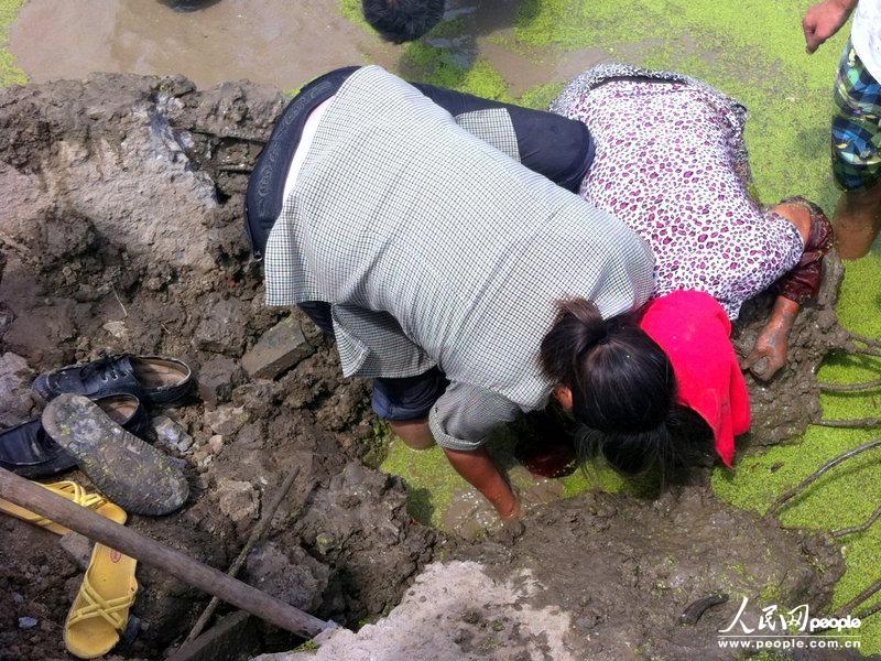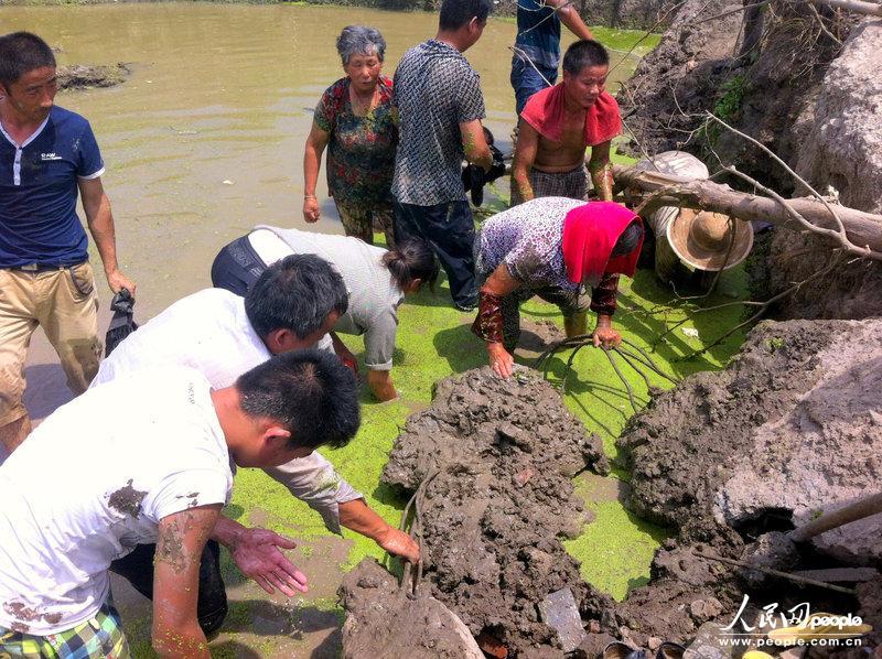 2013年8月4日,不少村民在池塘边的泥水中寻找古钱币。8月3日,江苏建湖县城人民南路和双拥路交界的李家庄一块荒地上,有人在挖掘机开挖的池塘边泥土里发现有古铜钱币,继而招来附近大量村民和行人的寻找,很快有大量的古钱币被发现遭哄抢。还有贩子前来收购古钱和找到古钱的人进行现场交易。截止到4日下午,仍有不少人在现场探摸。按照法律规定,地下一切遗存文物归国家所有,但在此事发生后长时间未见当地有关部门前来干预。
