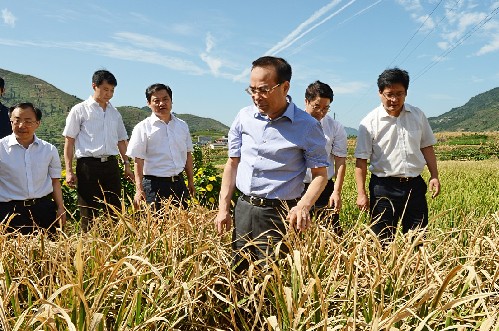 8月9日,市委书记孙政才在万盛经开区青年镇湛家村的田间地头察看旱情。 记者 巨建兵 摄