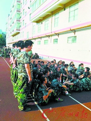 本报讯8月14日,郑州市十九中高中部进行了新生军训会操表演。当天烈日当空,怕晒爱美的女同学们很想找个阴凉的地方。可是,马上要开始彩排,高一新生已经将方阵位置固定好了,不能随意走太远。于是,就有女生向高一(10)班班长童嘉宁请求道:“我能站到你的影子里吗?”童嘉宁当时就想,反正大家都要在太阳底下晒着,自己可以帮她们遮阳也好。于是,童嘉宁叫来了同宿舍的5个男生,组成了一道人墙,人墙下,几个女生可以享受到了“人影阴凉”。