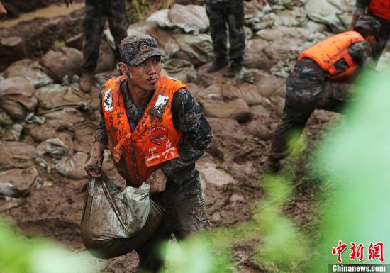 8月15日8时至16日8时,吉林省发生入汛以来最大的一场强降雨过程。目前省内吉林、延边、辽源、通化、白山、四平,6个地区的23个县市区115个乡镇受灾,受灾人口超75万。图为吉林省桦甸市火龙河堤坝高家沟河段河堤多出渗漏,沈阳军区16集团军工兵团赴火龙河抢险,截止8月16日21时,终于将7处渗漏点全部封堵完毕。中新社发 杨再新 摄