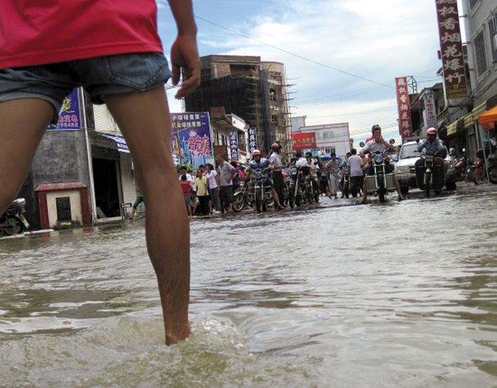 昨日17:20 离五华县城约8公里的横陂镇成了“水城” 羊城晚报记者 黄巍俊 摄