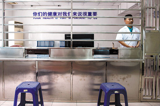 看守所里的医务室,在押人员去看病时,与医生需隔一道铁栏