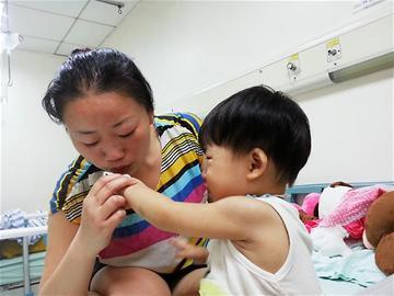 昨日,华西第二医院,来自彭山的1岁女童星星正在输液。19日凌晨,星星妈妈包里的27000元救命钱被人偷走 摄影记者 鲍泰良