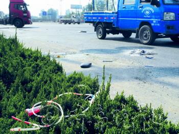 “我父亲骑摩托车回家吃午饭,被一辆大货车撞倒了,伤着了脑袋后面。”在省立医院急诊科,董先生的儿子董双告诉记者。董双T恤前襟血迹斑斑,左眼有些许血丝。