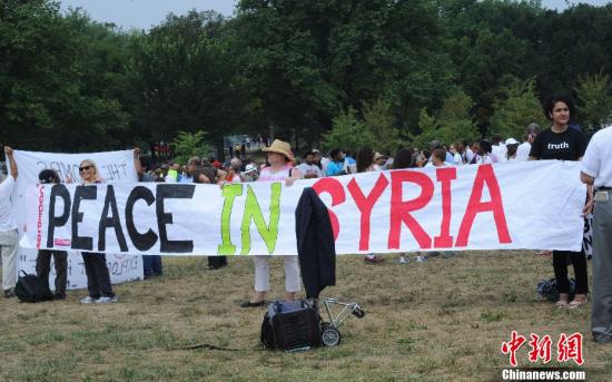 资料图:美国部分民众8月28日在首都华盛顿集会,呼吁美国政府不要对叙利亚动用武力,称叙利亚需要和平。中新社发 张蔚然 摄
