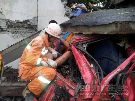 由于变形严重的驾驶室内空间十分狭小,给救援工作带来了很大的困难。消防官兵带着救援工具,先慢慢清除压在司机身上的砖块、水泥板和车辆零部件。