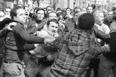 当地时间3月25日,叙利亚首都大马士革,总统巴沙尔阿萨德的支持者与反对者在示威时发生冲突,双发发生肢体接触。